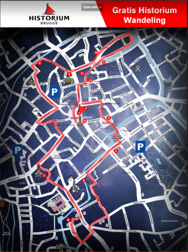 Een zeer vergelijkbare looproute kun je zelf ook lopen. Er is een gratis route te downloaden: https://drive.google.com/file/d/1Uwyn1U98E9--zQAY11AzOzVQR55fCafj/view Hier staan ook meteen informatie bij de bezienswaardigheden vermeldt. Hieronder heb ik de route als afbeeldingen geplaatst.